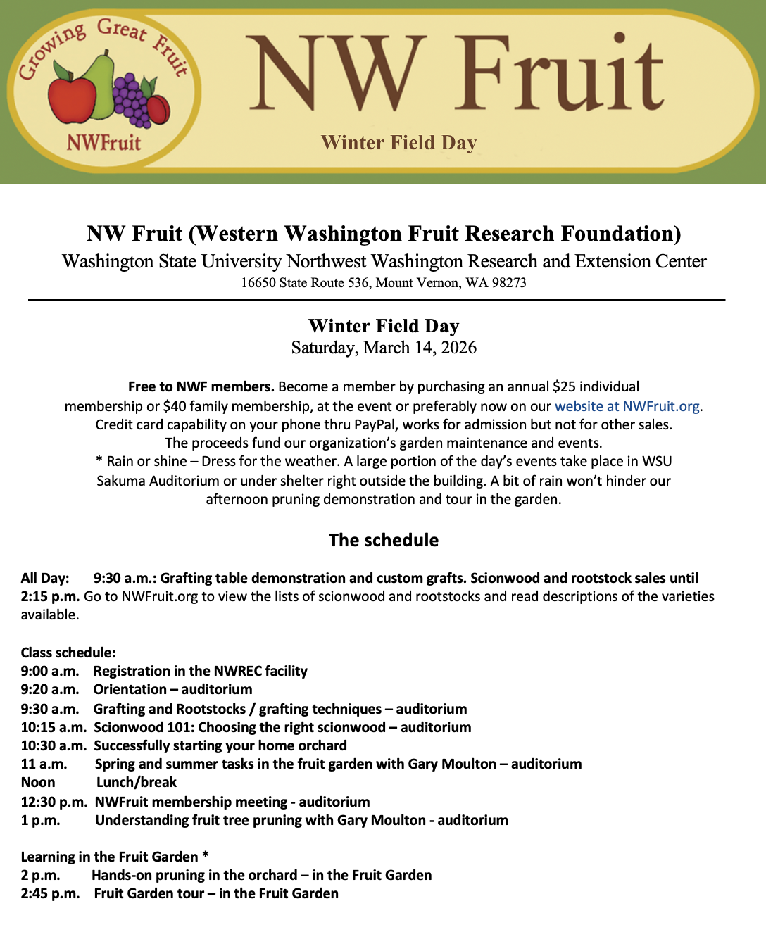 Winter Field Day 2026 Pear Scionwood List